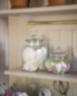 Glass jar with a lid in a sweet round shape. Suitable for, for example, cookies or cotton balls. Beautiful to display in the kitchen or bathroom.