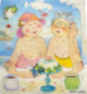 Dishcloth from Birgitta Lindeblad. The original motiv is painted by Birgitta Lindeblad in egg tempera, and has been printed onto theese dishclothes.
