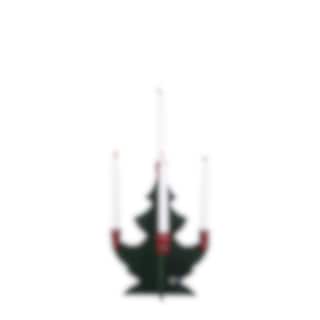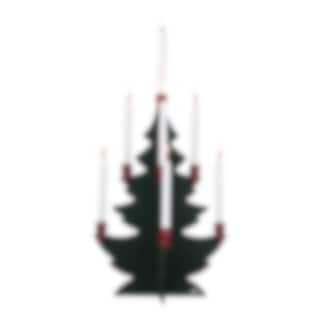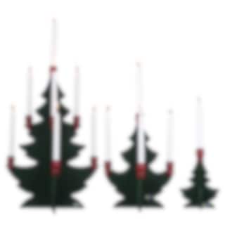 Christmas trees made in Sweden out of wood, with candleholders in metal for chime candles.