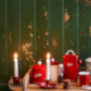 Candle holder made in Sweden out of birch wood. Handpainted red with candleholders in metal.