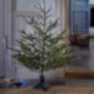 Small christmas tree stand in green laquered sheet metal. Three screws to fasten the stem.