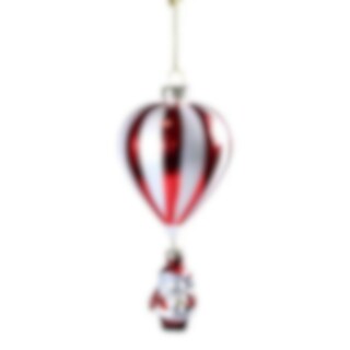 Beautiful ornament in glass, in the shape of a santa and an air balloon in red.