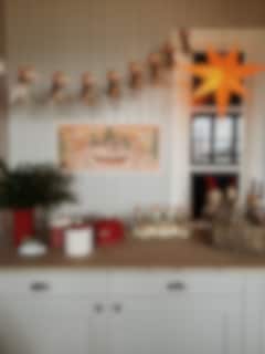 Swedish old-fashioned fold out paper row with motif of a Santa with a lantern.