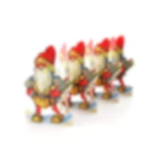 Swedish old-fashioned fold out paper row with motif of a happy Santa with Christmas gifts.