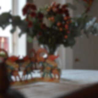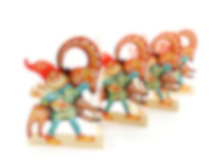 Swedish old-fashioned fold out paper row with a small Santa and a gingerbread.