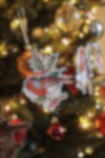 Garland with robins on a red string. Each bird is 18 cm high, a total of 10 birds. One-sided print.