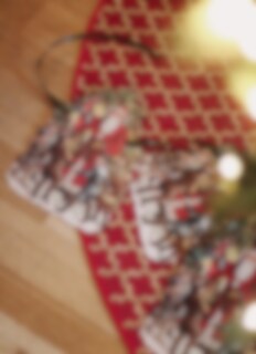 Garland with Christmas motifs of a Santa and children. Double-sided printi. 5 figures on each string, the string is 1.2 m, the motif is 11.5 × 16.5 cm.