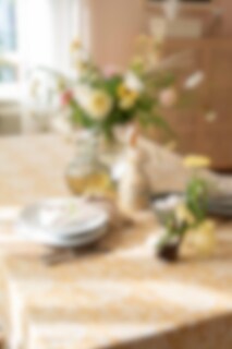 Cotton table cloth with a magnificent pattern and beautiful border along the long sides. A table cloth in soft colors that enhances the atmosphere of the room.
