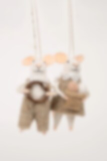 Tiny mice handmade in synthetic wool, a set of 2 different mice. Nice decorations to hang on a twig or in a garland in the window.