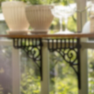 Bracket made of black cast iron in a classic design with beautiful details. Combine with any shelf.