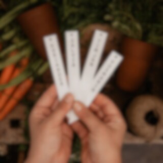 Planter stick in lacquered metal. Put it in a pot or flowerbed to know whats growing there. The jute string makes it possible to tie around a pot as a nice part of a gift.