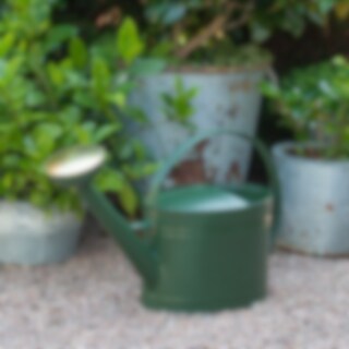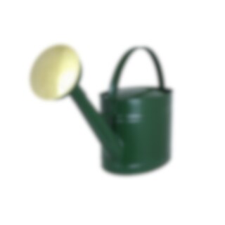 Beautiful watering can in moss green metal and a detachable watering can rose on the spout.
