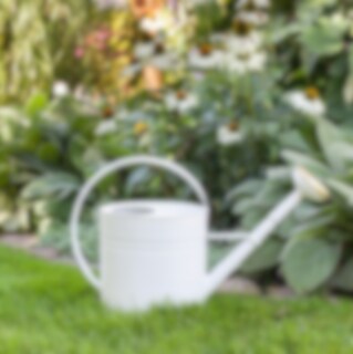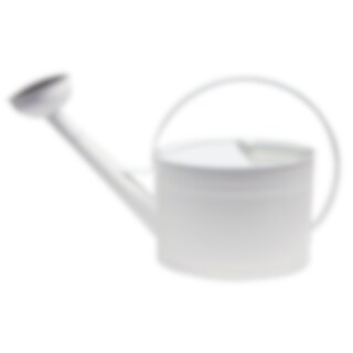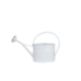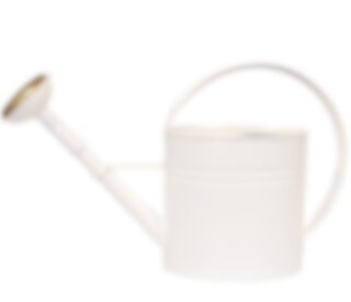 Beautiful watering can in white metal and a detachable watering can rose on the spout.