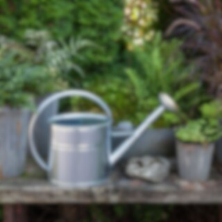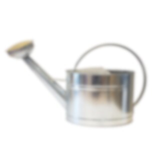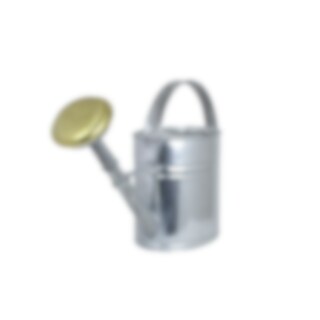 Wwatering can in galvanized sheet metal and a detachable watering can rose on the spout.