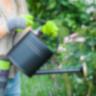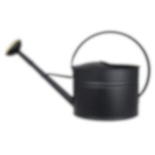 Beautiful watering can in matte black metal and a detachable watering can rose on the spout.