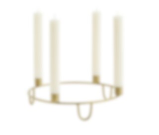 Round candle holder in iron with a lovely color of antique brass. Has three feet and four candle holders. Becomes a real eyecatcher at the center of the dinner table.