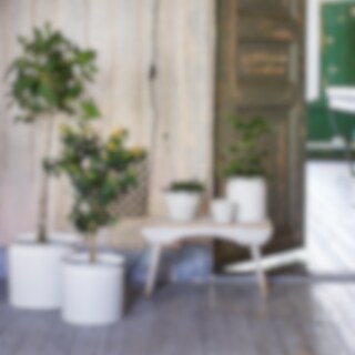 Pot in white lacquered sheet metal. Comes with a galvanized inner pot to prevent rust.