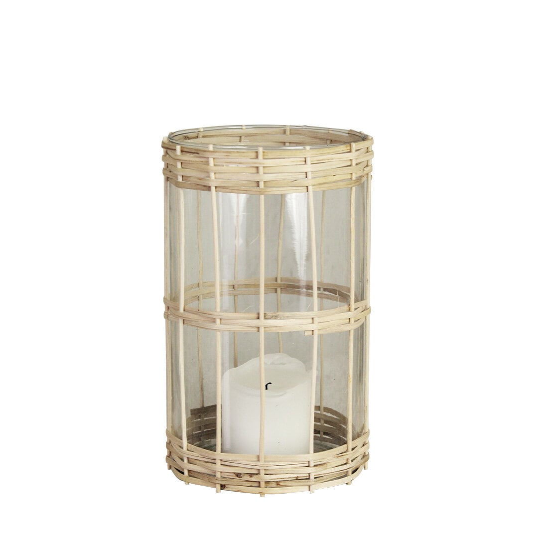 Rural candle holder in glass with beautiful bamboo details. Create a cozy atmosphere in your home, on the balcony or in the garden.