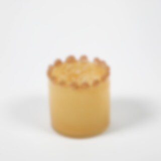 A beautiful and elegant candle holder with a lovely orange color tone and round, playful shapes on the top edge. Becomes a stylish decoration in the home.