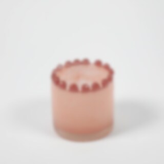 A beautiful and elegant candle holder with a lovely pink color tone and round, playful shapes on the top edge. Becomes a stylish decoration in the home.