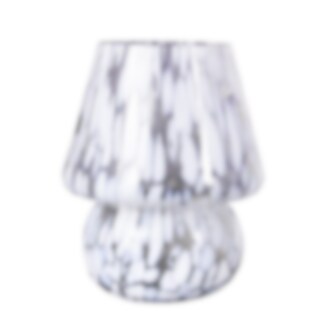 Candle lantern in glass for tealights, in the shape of a mushroom. With a beautiful pattern of white dots, this candle lantern creates a cozy warmth and an atmospheric glow in any room.