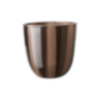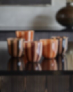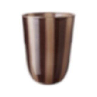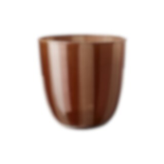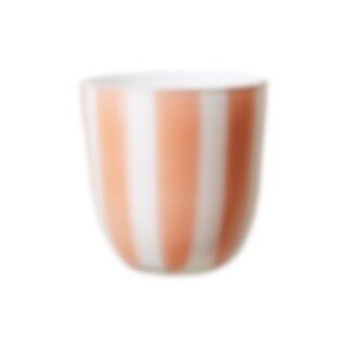 Small tea light holder in glass with beige and olive green stripes, suitable for tealights.