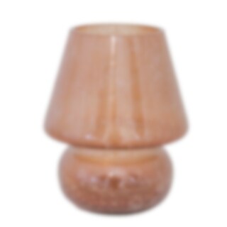 Glass lantern for tea lights, shaped like a mushroom. With a beautiful green color and natural variations, this lantern creates a cozy warmth and an atmospheric glow in any room. Not dishwasher safe.