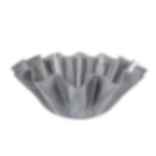Charming bowl resembling a baking pan with its wavy edges. The bowl is made of metal with a grayish finish. It can also be used as decoration with, for example, moss and a large candle.