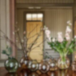 Small, minimalistic and elegant vase in grey stained glass with etched stripes. The vase is made of 50-60% recycled glass.