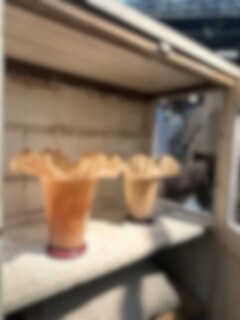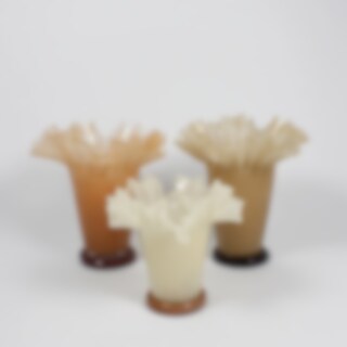 A beautiful and elegant vase with a lovely peach color tone and a playful shapes. Becomes a stylish decoration in the home.