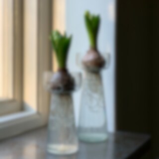 Beautiful hyacinth flower vase in clear glass with an etched pattern. Comes in different colours and sizes. The vase is made of 50-60% recycled glass.