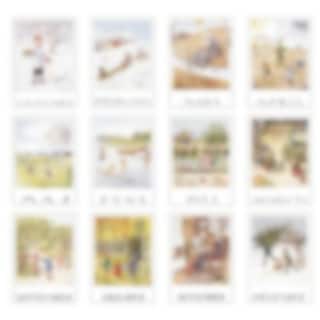 12 lovely monthly pictures with motifs taken from Elsa Beskow's classic picture book "Årets saga" from 1927. Comes in a nice folder with rubber band.