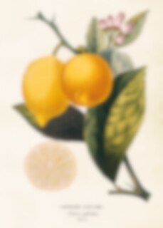 Poster in a vintage style with a botanical illustration of lemons and the name in latin, Limonier Sauvage. Delivered in a paper tube.