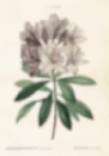 Poster in a vintage style with a motif of a beautiful rhododendron flower.