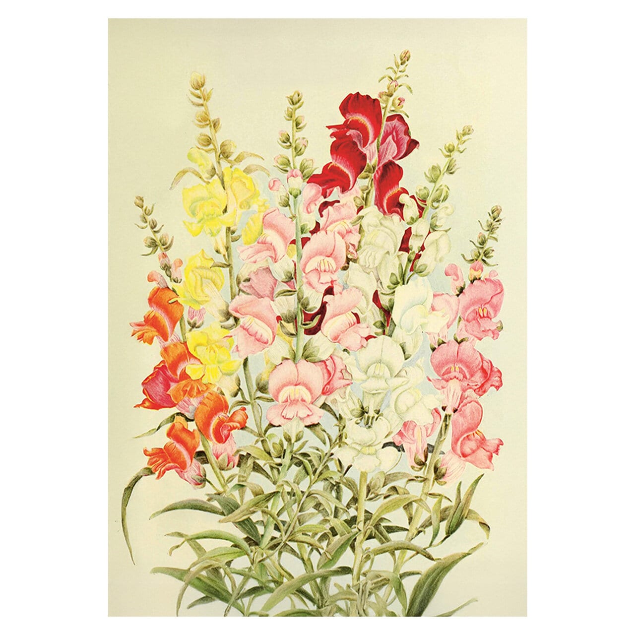 Lovely, old-fashioned poster with a motif of beautiful hollyhocks in several colours. Nice to combine with other posters in the same style.