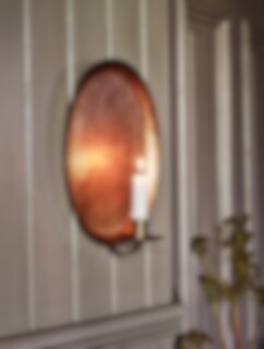 Beautiful wall sconce with a hammered wall bracket in antique brass finish that spreads an atmospheric light and at the same time is a nice detail on the wall. Suitable for a chandelier candle.
