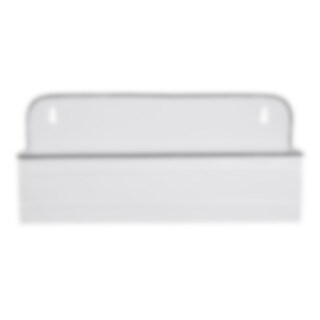 Lacquered sheet metal box in white with a grey edge. Use for storing dish brushes and detergents in the kitchen. Two holes for hanging.