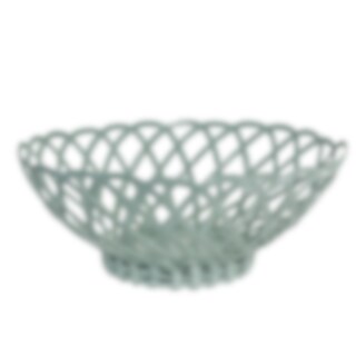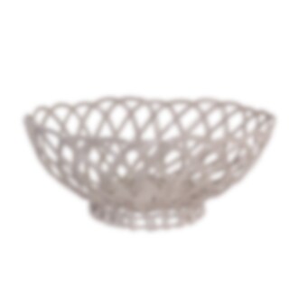 A beautiful round wire basket with a small base, in a lovely beige color. Perfect storage for the kitchen.