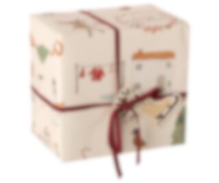 The beautiful decorated giftwrap is made of 100% FSC certified paper. Add one of the beautiful Maileg gift ribbon and gift tag to complete the gift.