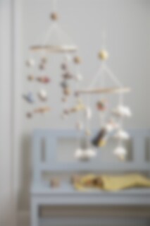 This felted mobile from Gry & Sif is perfect for the baby to look at from the bed or from the nursery table.