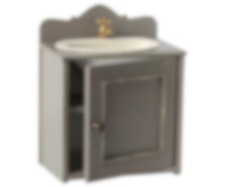 A beautiful vintage metal sink with a golden water tap. The sink comes in a wooden closet which has the most beautiful paint details and fullfill the old vintage look. Age: 3 years & up.