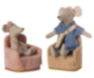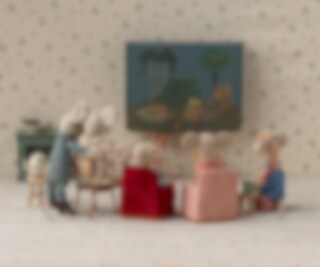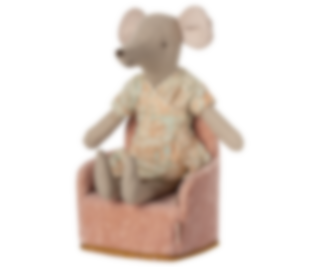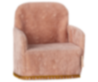Take a break on this lovely miniature armchair from Maileg. Match it up with the coffee table and it fits perfectly into the Maileg dollhouse. Filling of polyester with a soft pink cover. Recommended from 3 years.