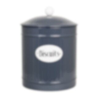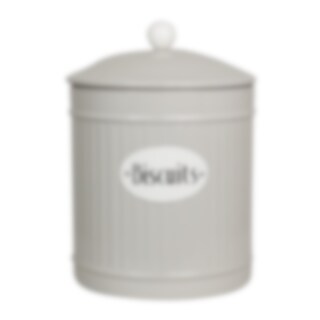 Round tin in beige color with a sign in white with the text Biscuits. From the tin series Hugo from Strömshaga.