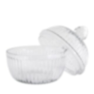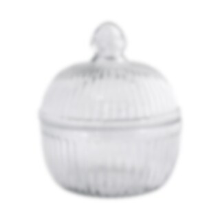 An old-fashioned glass bowl with a lid that is both beautiful and practical. With transparent glass, you can easily see its contents, making it suitable for both the kitchen and bathroom.