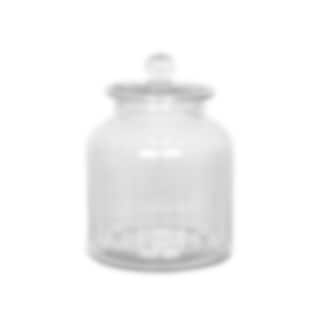 A small glass jar in ribbed glass with a lid. Perfect for storage in, for example, the kitchen or bathroom. The lid is not airtight.