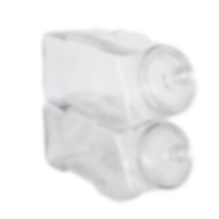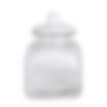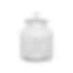 The jar is stackable and works excellently for storage. The lid is not airtight. The jar is made of 50-60% recycled glass. Also available in a larger size.