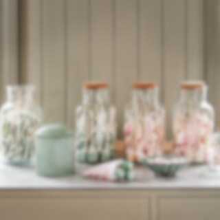 Large glass jar with lid made of cork. Fits nicely in both bathroom and kitchen, or why not to flower bouquet? Stylish and classic! Available in several sizes.