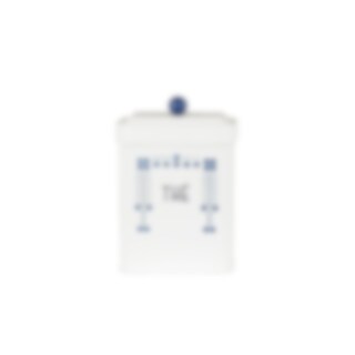 Tin can with lid and old-fashioned motif of a decorative border and the text thé. The tin can is handmade, which means that differences and unevenness may occur.