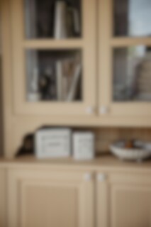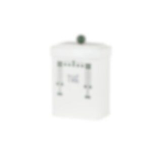 Tin can with lid and old-fashioned motif of a decorative border and the text thé. The tin can is handmade, which means that differences and unevenness may occur.