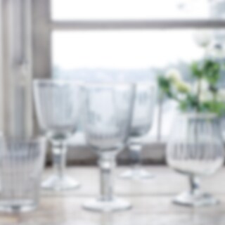Large drinking glass with etched stripes. Dishwasher-safe. The glasses are made of 50-60% recycled glass.